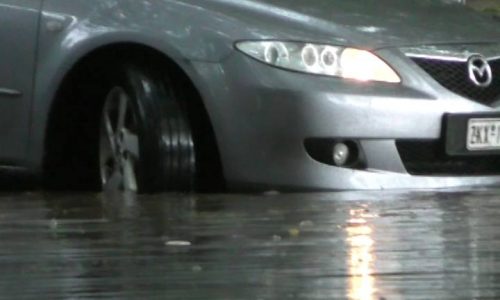 Από το χαλάζι και την νεροποντή που ακολούθησε, το οδόστρωμα καλύφθηκε με μεγάλες ποσότητες και η κίνηση των οχημάτων για αρκετή ώρα, διεξάγονταν με πολύ μεγάλη δυσκολία.