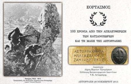 Την 103η επέτειο από την απελευθέρωση των Κατσανοχωρίων, γιορτάζει ο Δήμος Βορείων Τζουμέρκων, ο Σύλλογος Κατσανοχωριτών Ιωαννίνων και η Τοπική Κοινότητα Αετορράχης, την Κυριακή 29 Νοεμβρίου, στην Αετορράχη, όπου γράφτηκαν κάποιες από τις πιο ένδοξες σελίδες της ιστορίας κατά την ιστορική Μάχη της Αετορράχης, η οποία είχε καταλυτικό ρόλο στην απελευθέρωση των Ιωαννίνων.