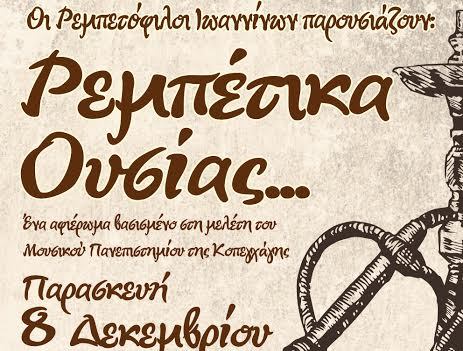 Οι Ρεμπετόφιλοι παρουσιάζουν τα…”Ρεμπέτικα Ουσίας” Η ρεμπέτικη μουσική – η κατά τον Μάνο Χατζιδάκι γνήσια Ελληνική – κρύβει μέσα της έναν ανεκτίμητο θησαυρό, τα “ρεμπέτικα Περισσοτερα » 06/12/2017 06:05
