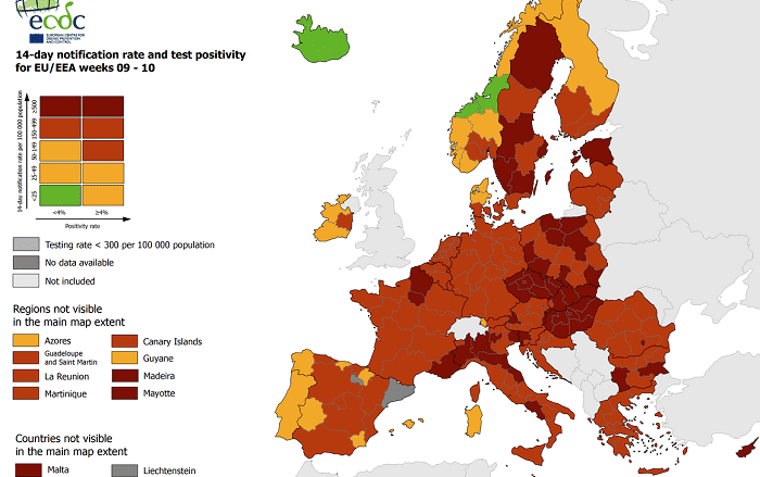 «Κοκκίνισε» η Ήπειρος όπως και ολόκληρη η Ελλάδα στον αναθεωρημένο χάρτη με την επιδημιολογική εικόνα της Ευρώπης, που εκδίδει κάθε