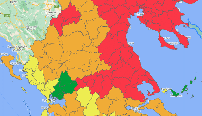Πράσινη η Άρτα, κίτρινη η Πρέβεζα και η Θεσπρωτία και σταθερά στο πορτοκαλί ο Νομός Ιωαννίνων. Αυτή είναι η εικόνα