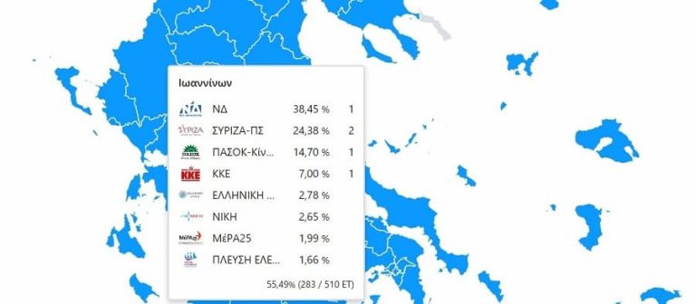 Άνετη νίκη της Νέας Δημοκρατίας στο Νομό Ιωαννίνων δίνουν τα αποτελέσματα από τα 107 εκλογικά τμήματα σε σύνολο 510. Η