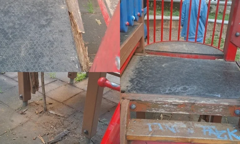 Επιτακτική είναι η ανάγκη αποκατάστασης της παιδικής χαράς στην οδό Ναπολέοντος Ζέρβα καθώς η κατάστασή της παραπέμπει σε άλλες δεκαετίες