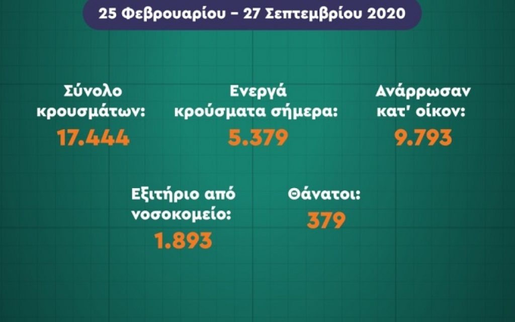 Το ίδιο χρονικό διάστημα μάλιστα σχεδόν διπλασιάσθηκαν οι θάνατοι ηλικιωμένων σε σχέση με το προαναφερόμενο χρονικό διάστημα τον Απρίλιο εν μέσω των περιοριστικών μέτρων. Ακόμη, το τελευταίο δεκαήμερο (18-27 Σεπτεμβρίου) υπάρχει αύξηση των κρουσμάτων της τάξης του 40% σε σχέση με το πρώτο δεκαήμερο του Σεπτεμβρίου αλλά διπλασιασμός των νεκρών. Δείγμα της μεγάλης θνησιμότητας που καταγράφεται τις τελευταίες ημέρες στη χώρα μας λόγω του Covid-19.