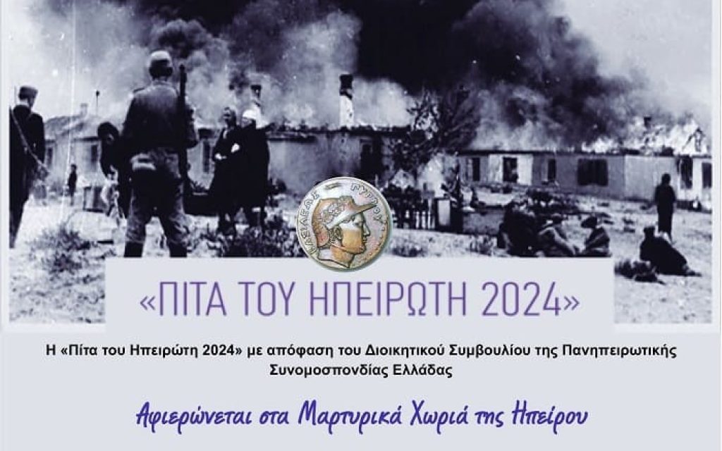 Αφιερωμένη στα Μαρτυρικά Χωριά της Ηπείρου θα είναι η Πίτα του Ηπειρώτη 2024 η κορυφαία εκδήλωση της Πανηπειρωτικής Συνομοσπονδίας Ελλάδος που θα πραγματοποιηθεί την Κυριακή 25 Φεβρουαρίου 2024 στο Στάδιο Ειρήνης και Φιλίας.