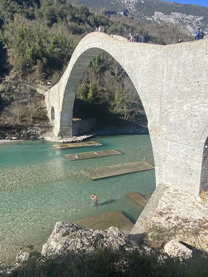Οκτώ χρόνια μετά την κατάρρευση και σχεδόν τρία μετά την ολοκλήρωση των έργων, έγιναν τα πρώτα Θεοφάνεια στο αναστηλωμένο γεφύρι της Πλάκας.