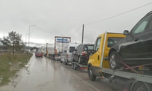 Αποτέλεσμα είναι εκατοντάδες φορτηγά που κινούνταν και στα δύο ρεύματα να παραμένουν ακινητοποιημένα.