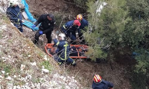 ΦΩΤΟ- Λίγο πριν τις δύο το μεσημέρι της Δευτέρας ολοκληρώθηκε η επιχείρηση της Πυροσβεστικής Υπηρεσίας για τον απεγκλωβισμό οδηγού από το όχημά του το οποίο κατέληξε σε γκρεμό.