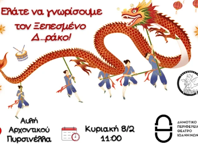 Το ΔΗ.ΠΕ.ΘΕ. Ιωαννίνων καλεί μικρούς και μεγάλους σε μια γιορτή γεμάτη χορό, τραγούδι και παιχνίδι, την Κυριακή 8 Φεβρουαρίου, στην αυλή του Αρχοντικού Πυρσινέλλα.