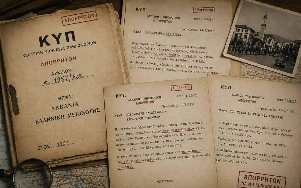 Το Epiruspost συνεχίζει την έρευνα στα αποχαρακτηρισμένα αρχεία της ΚΥΠ, φωτίζοντας τον ρόλο της Αλβανίας και την τύχη της ελληνικής μειονότητας σε μία από τις πιο σκοτεινές περιόδους του Ψυχρού Πολέμου.