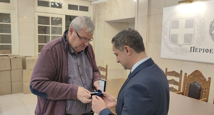 Έτσι η συνάντηση ολοκληρώθηκε με δώρα προς τον Υπουργό ενώπιον των δημοσιογράφων και των τηλεοπτικών συνεργείων.
