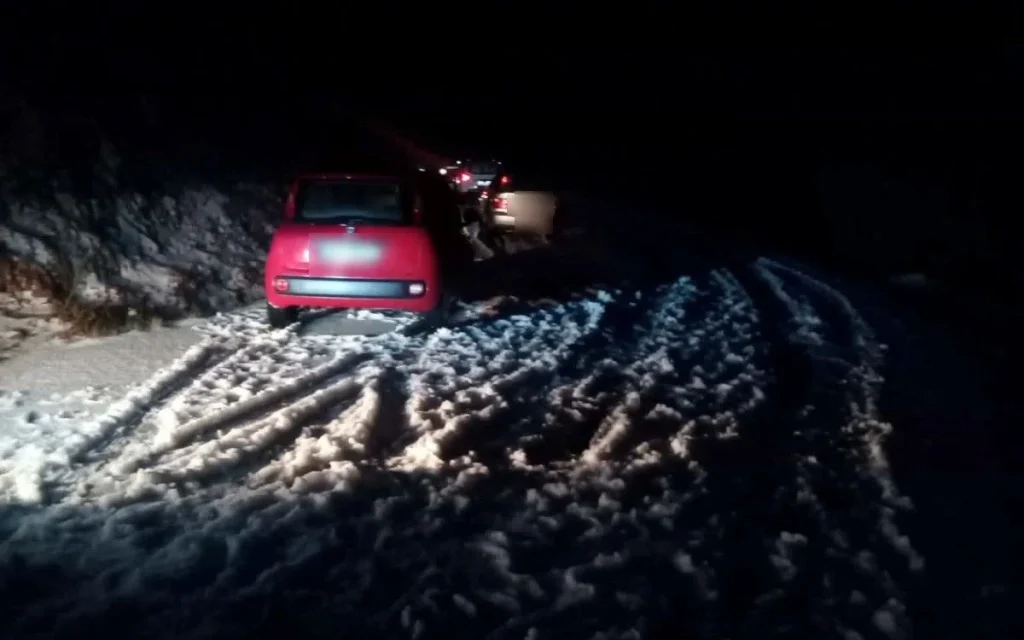 Ωστόσο, αρκετά οχήματα βρέθηκαν εγκλωβισμένα στις στροφές του χωριού, με τους οδηγούς να αδυνατούν να ελέγξουν την πορεία τους πάνω στον «λευκό τάπητα».