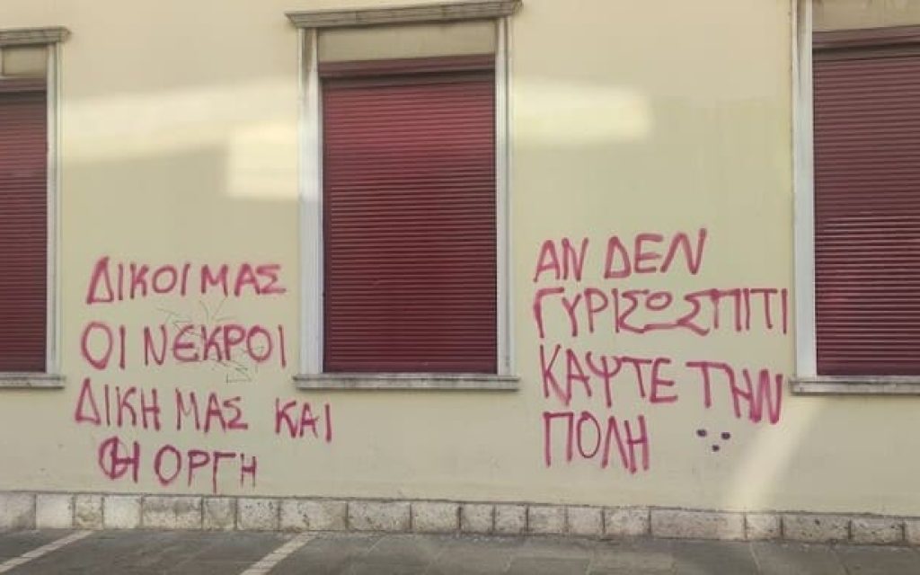 Αφορμή φαίνεται ότι αποτέλεσε η αναγραφή συνθημάτων στο κτίριο της Περιφέρειας λίγες ώρες πριν την παρέλαση..