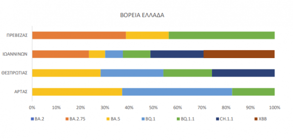 Το στέλεχος BA.5 παραμένει το συχνότερο στέλεχος της παραλλαγής Όμικρον που επικρατεί στην Ελλάδα και παγκοσμίως, με την υποπαραλλαγή BQ.1.1 της BA.5 να κερδίζει έδαφος.