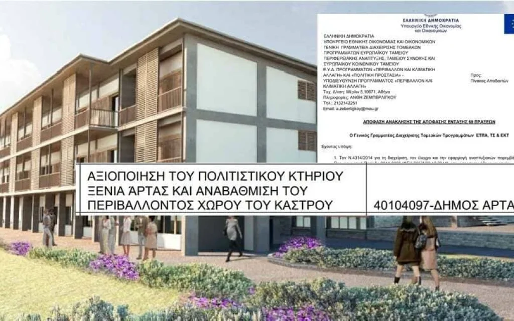 Το έργο που ήταν ενταγμένο στο ΕΣΠΑ, δεν είχε συμβασιοποιηθεί μέχρι το τέλος του 2023, δεν κινήθηκε καμία διαδικασία για να αποτελέσει ένα από αυτά που χαρακτηρίζονται «γέφυρα» και πριν από λίγες ημέρες ο Γενικός Γραμματέας Διαχείρισης Τομεακών Προγραμμάτων προχώρησε στην έκδοση απόφασης ανάκλησης για 69  έργα σε όλη την χώρα, στα οποία περιλαμβάνεται και η αξιοποίηση του Ξενία Άρτας με την αναβάθμιση του περιβάλλοντος χώρου στο Κάστρο της πόλης.