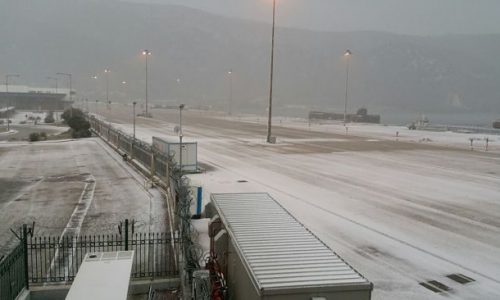 Από νωρίς το πρωί χιονίζει, κατά διαστήμα έντονα, σε ολόκληρο το Νομό Θεσπρωτίας, με αποτέλεσμα να το έχει στρώσει ακόμη και στο λιμάνι της Ηγουμενίτσας!!!
