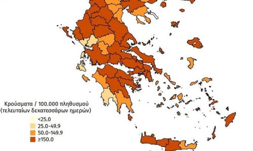 Είναι μεταξύ των ελαχίστων με το ίδιο χρώμα και λιγότερο επιβαρυμένων καθώς τα κρούσματα υπολογίζονται μεταξύ 25 και 50 ανά εκατό χιλιάδες πληθυσμού για το διάστημα των 14 ημερών!