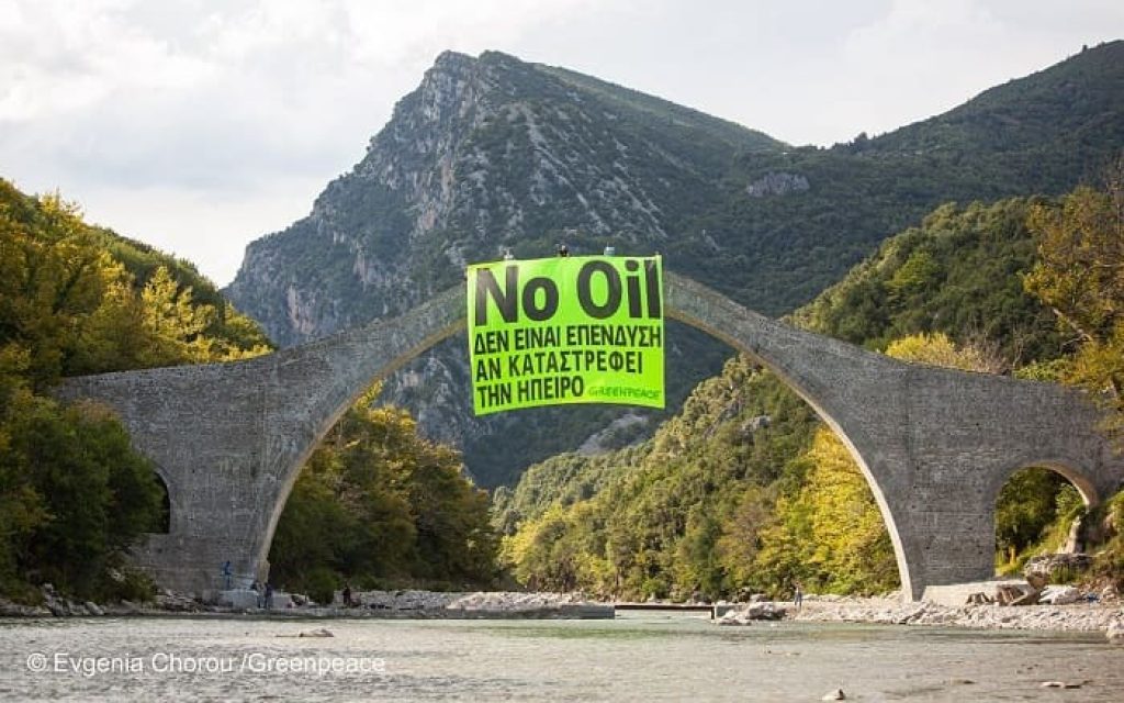 Από το ιστορικό γεφύρι της Πλάκας όπου οι εργασίες αναστήλωσης ολοκληρώθηκαν πρόσφατα και εντός των επόμενων ημερών το έργο παραδίδεται ξεκίνησαν τις διαμαρτυρίες τους στην Ήπειρο μέλη της Greenpeace.