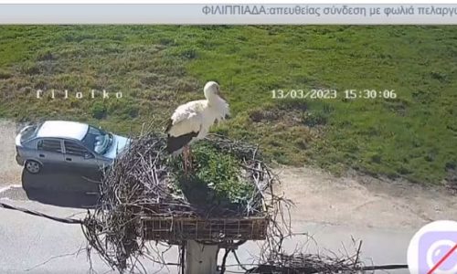 Νωρίτερα από ότι συνήθως έφτασε ο πελαργός στη διάσημη πλέον φωλιά της Φιλιππιάδας. Εικόνα από τη φωλιά μεταδίδει αδιάκοπα το filoiko.blogspot.com.