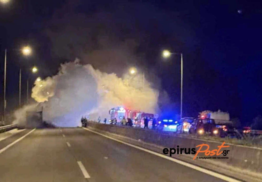 Τεράστια ήταν η επιχείρηση που έγινε από την Πυροσβεστική Υπηρεσία όταν λίγο μετά τις τέσσερις τα ξημερώματα κλήθηκε για την κατάσβεση φωτιάς σε νταλίκα που βρισκόταν στην Εγνατία Οδό, κοντά στις σήραγγες Δραμεσιών και Αγίας Αναστασίας.