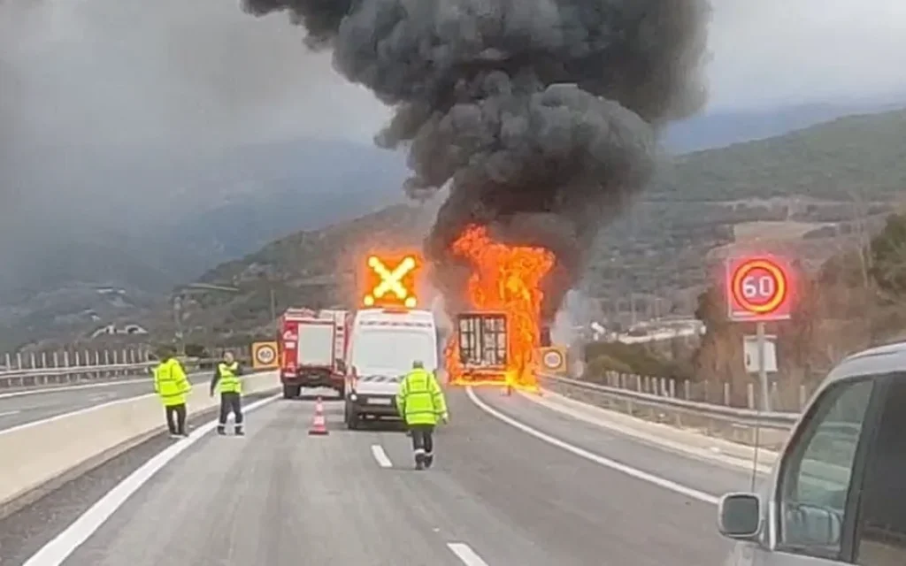 Η φωτιά ξέσπασε όταν βρισκόταν στο 100ο χιλιόμετρο, κοντά στο Μικρό Περιστέρι.