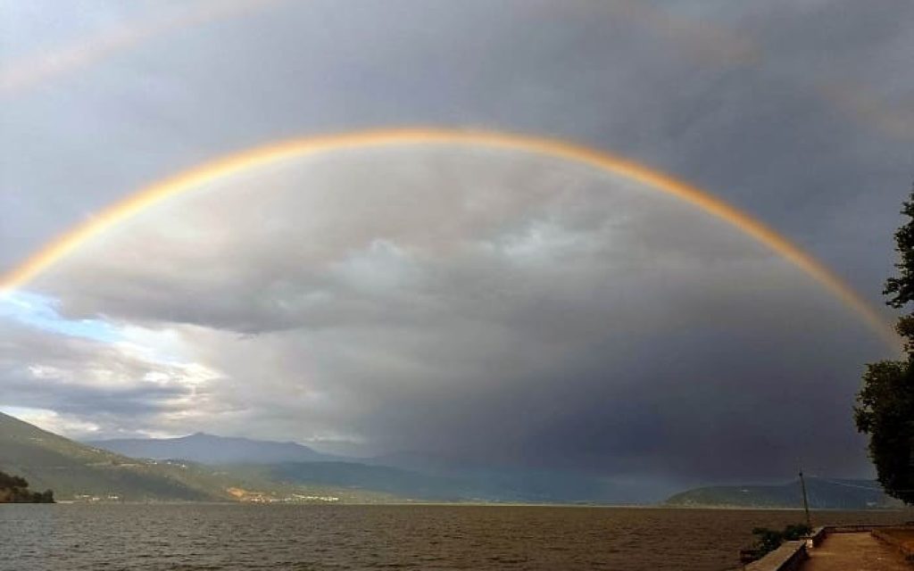 Ένα εντυπωσιακό ουράνιο τόξο, γέμισε τον ορίζοντα των Ιωαννίνων, μετά το απογευματινό μπουρίνι.