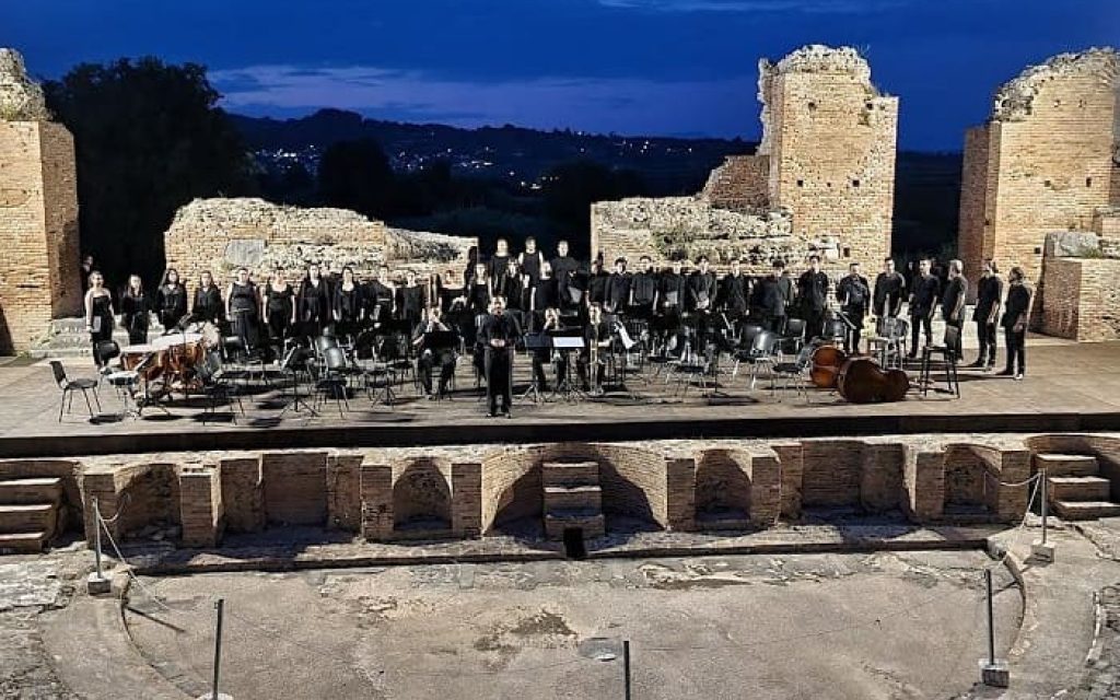 Στον αύλειο χώρο της Παρηγορήτισσας, και στον εμβληματικό χώρο του Ρωμαϊκού Ωδείου της Νικόπολης, η νεοσύστατη Συμφωνική Ορχήστρα και η Χορωδία του Τμήματος Μουσικών Σπουδών παρουσίασαν έργα Ελλήνων και Ιταλών Μουσουργών σε παγκόσμια πρώτη εκτέλεση.