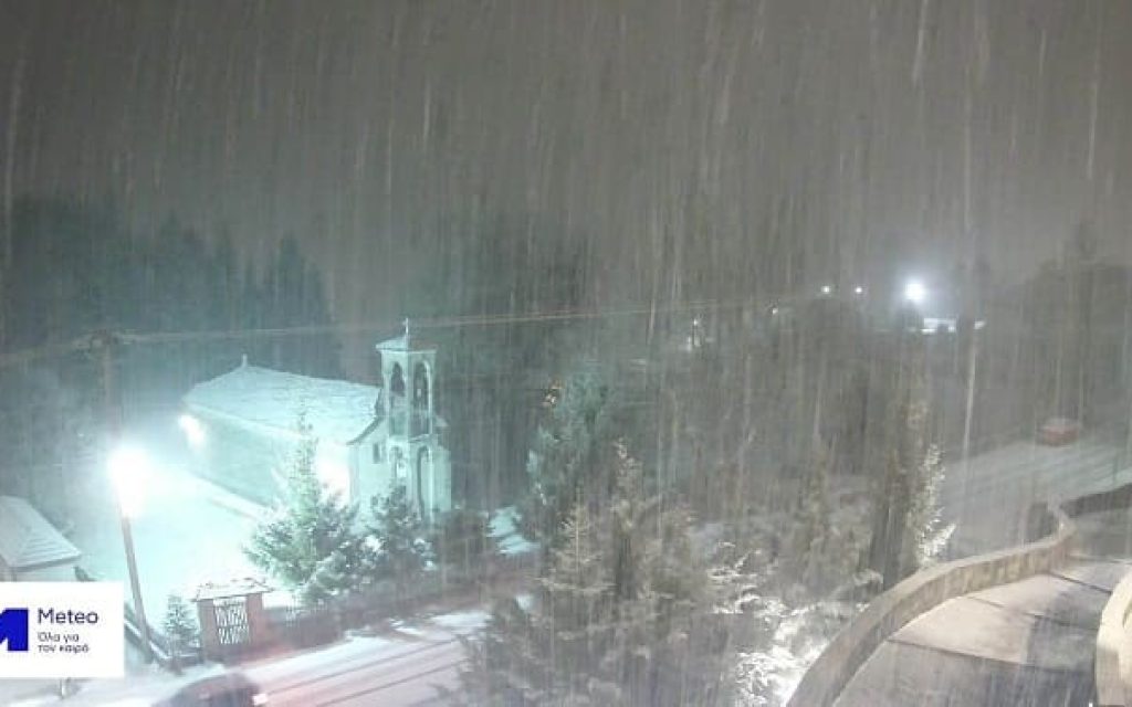Έντονη χιονόπτωση εκδηλώνεται στο Μέτσοβο και σε άλλες ορεινές περιοχές του Νομού Ιωαννίνων με υψόμετρο άνω των χιλίων μέτρων.