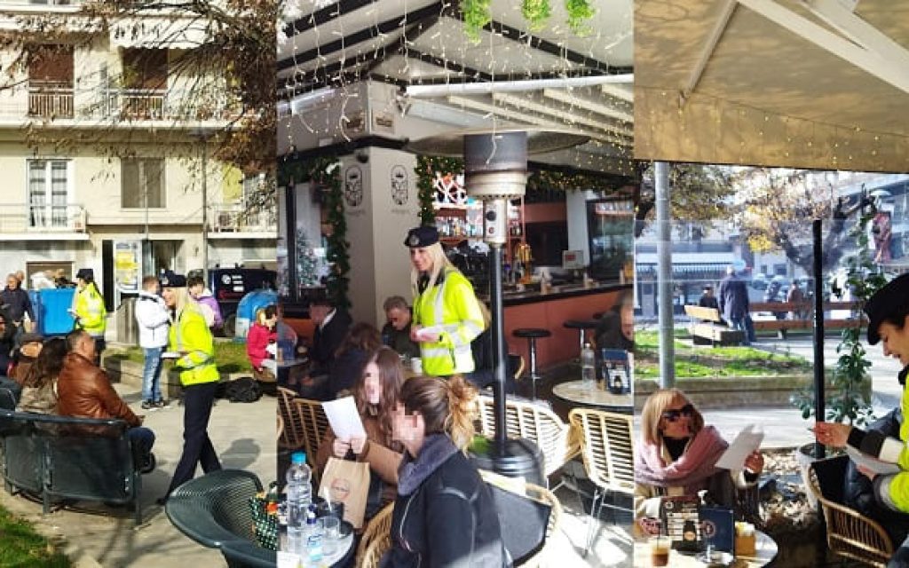Σε κεντρικά σημεία της πόλης των Ιωαννίνων και μέσα σε ένα εορταστικό κλίμα, οι αστυνομικοί, εκτός από τις ευχές τους, μοίρασαν φυλλάδια με τον «Δωδεκάλογο της Οδικής Ασφάλειας», υπενθυμίζοντας στους φίλους οδηγούς βασικούς κανόνες κατά την οδήγηση, με σκοπό την πρόληψη των τροχαίων ατυχημάτων.