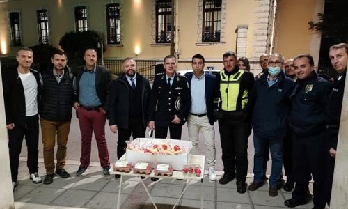 Εκεί αντιπροσωπεία του Διοικητικού Συμβουλίου της Ένωσης αντάλλαξε ευχές με τους αστυνομικούς που είχαν βάρδια και προσέφερε πασχαλινά εδέσματα.