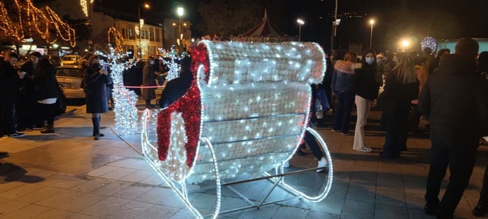 Το δέντρο, η φάτνη, το έλκηθρο και το «τούνελ των αστεριών» δημιουργούν ένα εντυπωσιακό σκηνικό που συμπληρώνει την εικόνα του εορταστικού στολισμού της πόλης.