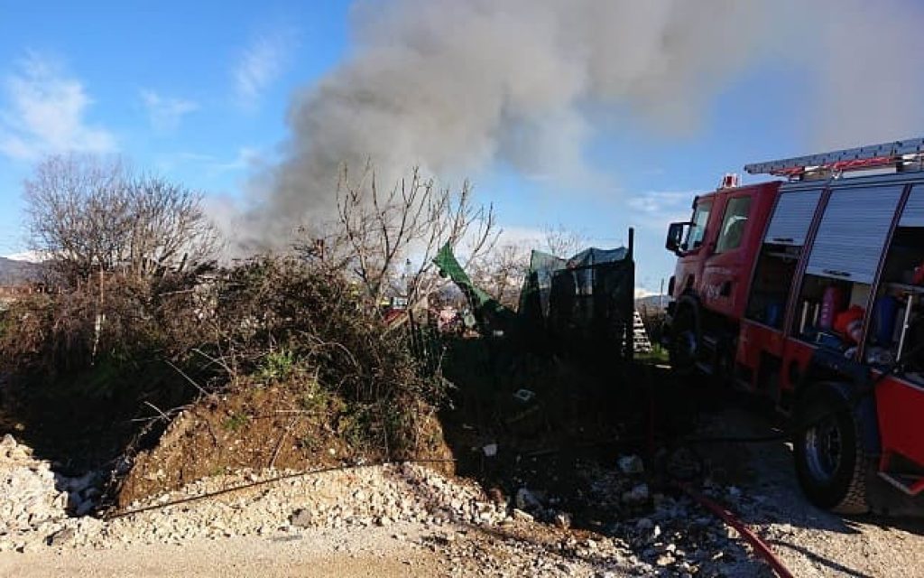 Τέσσερα πυροσβεστικά οχήματα με το ανάλογο προσωπικό επιχειρούν για την κατάσβεση ενώ στο σημείο βρίσκονται και δυνάμεις της Αστυνομίας.
