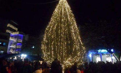 Υπό τους ήχους της Φιλαρμονικής του Συλλόγου άναψε το Χριστουγεννιάτικο δέντρο… Ένα κλασικό δέντρο που φωτίζεται από χιλιάδες λαμπάκια.