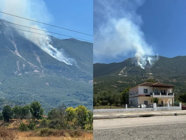 Η φωτιά καίει δασική έκταση, χωρίς να υπάρχει απειλή για τους οικισμούς.
