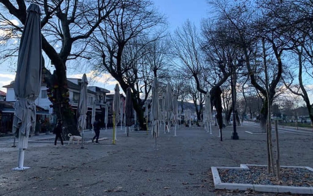 Περιορισμένη η κίνηση στους δρόμους, άδειοι οι πεζόδρομοι, λίγοι περιπατητές στην παραλίμνιο.
