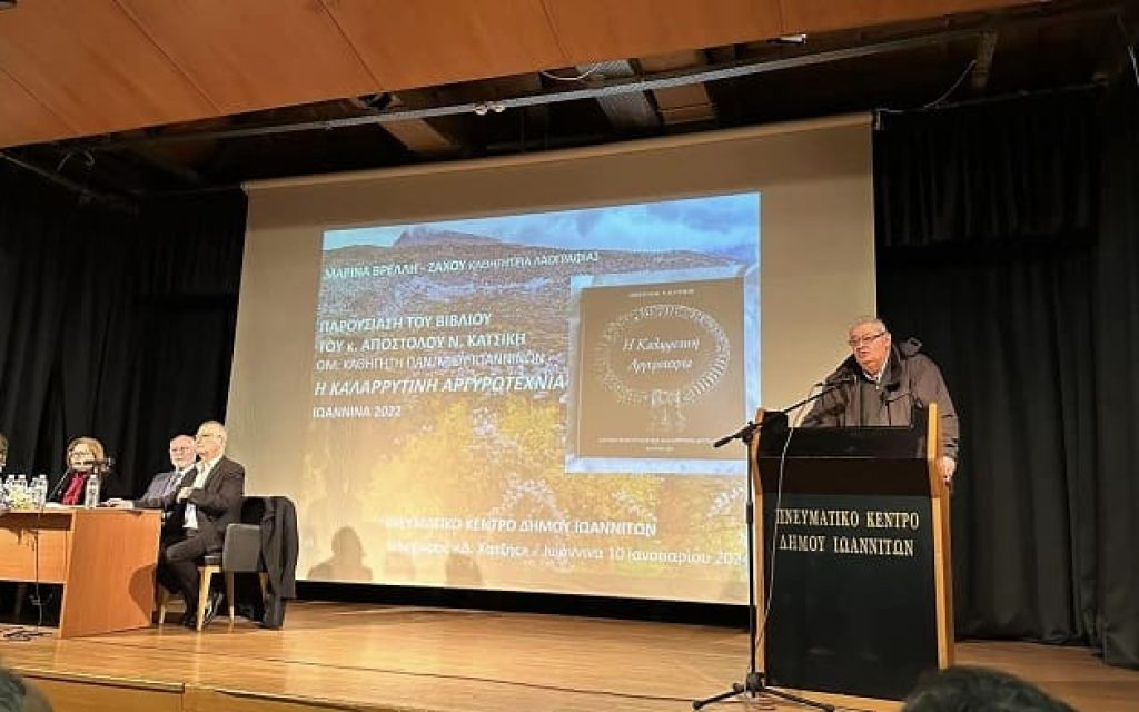 Υπό τον τίτλο “Η Καλαρρυτινή Αργυροτεχνία,” ο Ομότιμος Καθηγητής του Πανεπιστημίου Ιωαννίνων, κ. Απόστολος Κατσίκης, παρουσίασε το βιβλίο του σε μια ενδιαφέρουσα εκδήλωση στα Ιωάννινα, που διοργάνωσε ο Πατριωτικός Σύνδεσμος Καλαρρυτών “Η Πίνδος.”