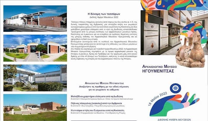 Η δράση συνδιοργανώνεται από κοινού με τις Εφορείες Αρχαιοτήτων Ιωαννίνων, Άρτας και Πρέβεζας στο πλαίσιο του εορτασμού για τη Διεθνή Ημέρα Μουσείων 2022, που ήταν φέτος αφιερωμένη στη «Δύναμη των Μουσείων», καλώντας το κοινό να ανακαλύψει κοινές εκφάνσεις της ιστορίας και του αρχαιολογικού πλούτου της Ηπείρου.