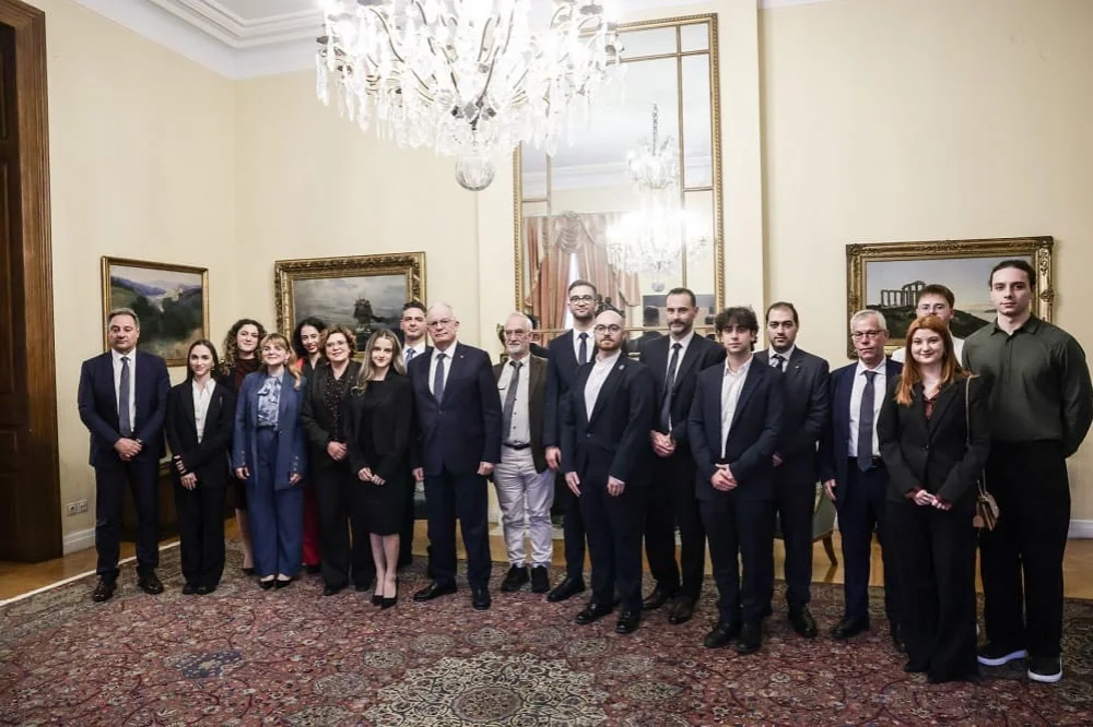 Ο Πρόεδρος της Δημοκρατίας, Κωνσταντίνος Τασούλας, δέχθηκε στο Προεδρικό Μέγαρο 12 φοιτητές του Πανεπιστημίου Ιωαννίνων, μέλη της ομάδας iGEM Ioannina 2025, οι οποίοι πρόσφατα κατέκτησαν το χρυσό μετάλλιο στον Διεθνή Διαγωνισμό Συνθετικής Βιολογίας που πραγματοποιήθηκε στο Παρίσι.