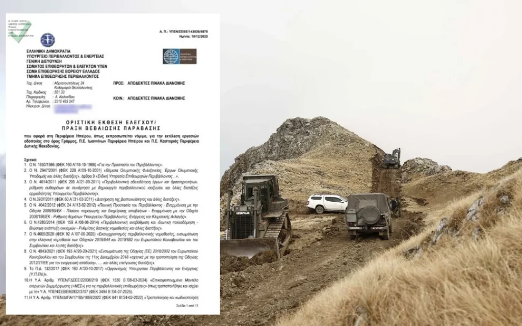 Χρονικό περιθώριο έξι μηνών δίνουν στην Περιφέρεια Ηπείρου οι Επιθεωρητές Περιβάλλοντος προκειμένου να προχωρήσει σε σειρά διορθωτικών ενεργειών στον Γράμμο μετά την διάνοιξη του δρόμου. Οι ενέργειες αυτές περιγράφονται με λεπτομέρειες στην οριστική έκθεση ελέγχου με την οποία επιβάλλεται και χρηματικό πρόστιμο για τις περιβαλλοντικές παραβάσεις που έχουν βεβαιωθεί.