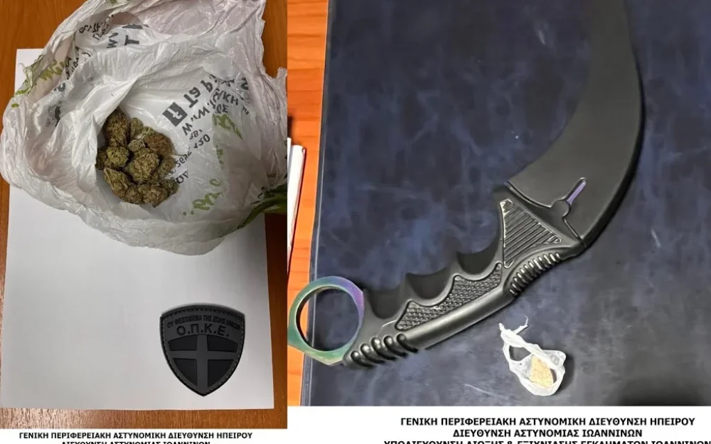 Συνελήφθη στα Ιωάννινα, από αστυνομικούς της Ομάδας Πρόληψης και Καταστολής Εγκληματικότητας (Ο.Π.Κ.Ε.) της Υποδιεύθυνσης Δίωξης και Εξιχνίασης Εγκλημάτων Ιωαννίνων, ένας ημεδαπός, κατηγορούμενος για κατοχή ναρκωτικών, παραβάσεις της νομοθεσίας περί όπλων και απείθεια.