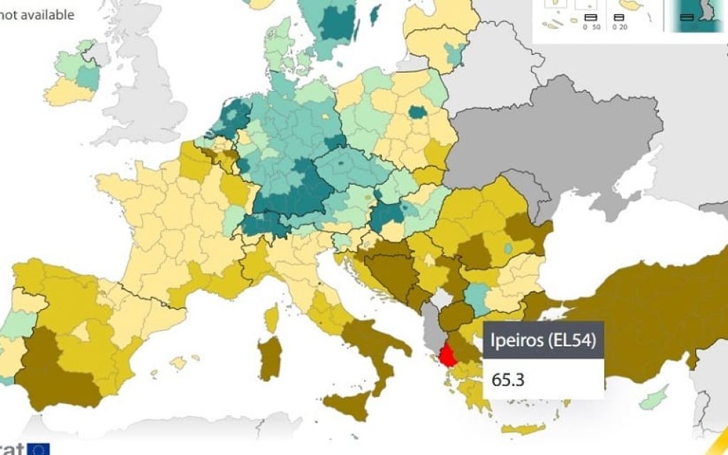 Η Ήπειρος με ποσοστό απασχόλησης 65,3 βρίσκεται προς τις τελευταίες θέσεις μεταξύ των 13 ελληνικών περιφερειών.