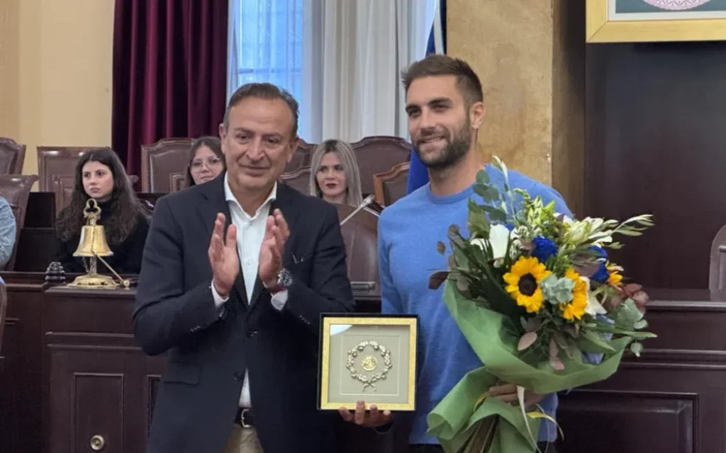 «Στην αρχαία Ελλάδα, οι πόλεις γκρέμιζαν τα τείχη τους για να υποδεχτούν τους Ολυμπιονίκες τους. Σήμερα, ανοίγοντας τις πόρτες της αίθουσας του Δημοτικού Συμβουλίου —του πιο σημαντικού χώρου του Δήμου— υποδεχόμαστε τον δικό μας Ολυμπιονίκη και Παγκόσμιο Πρωταθλητή, τον Στέφανο Ντούσκο.
