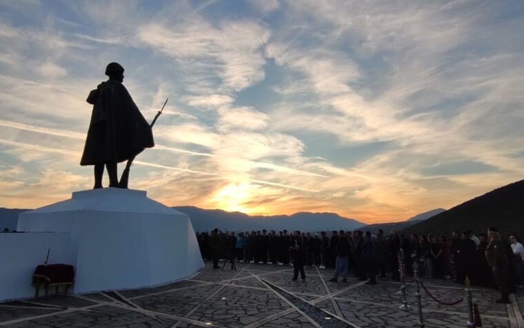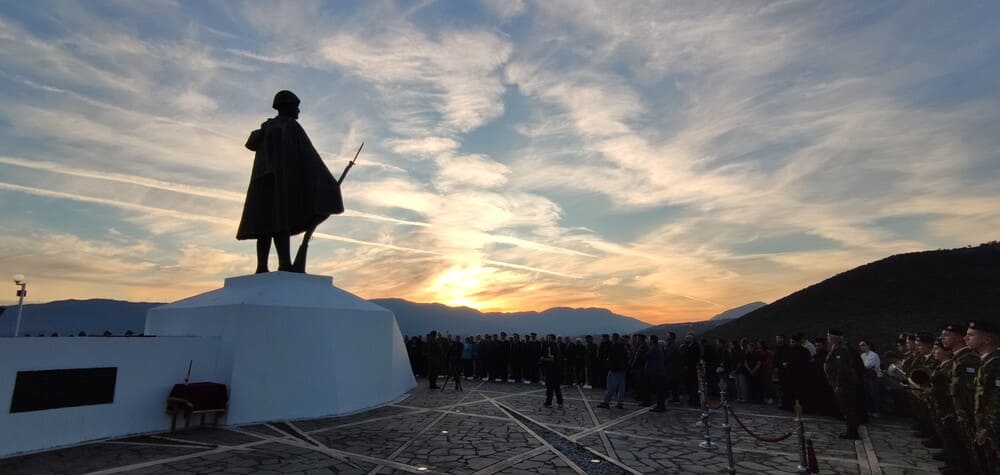 Στο Μνημείο του Μαχητή που δεσπόζει και στη βάση του φυλάσσονται οστά ηρώων που έπεσαν στον αγώνα για την ελευθερία της χώρας, έγινε επιμνημόσυνη δέηση και ακολούθησε κατάθεση στεφάνων.
