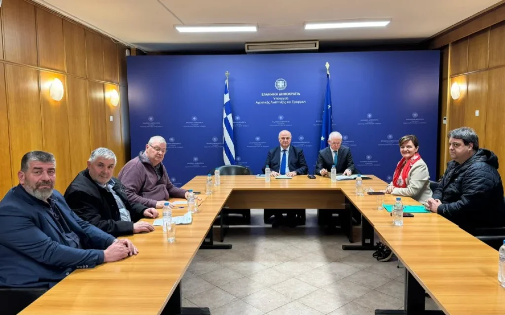 Τα προβλήματα των παραγωγών αποτέλεσαν αντικείμενο μιας ακόμη σύσκεψης που έγινε στο Υπουργείο Αγροτικής Ανάπτυξης παρουσία του Υπουργού Κώστα Τσιάρα, του Περιφερειάρχη Ηπείρου Αλέξανδρου Καχριμάνη, της βουλευτή Μαρίας Κεφάλα ενώ ο ΤΟΕΒ εκπροσωπήθηκε από τον Πρόεδρο του Ηρακλή Μπαλαντάνη και τον Μιχάλη Τζίμα.