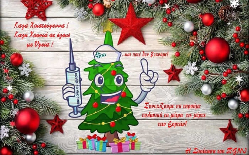 Στην κάρτα πέρα από τις ευχές για υγεία δεσπόζει το εμβόλιο κατά του Covid-19 που αποτελεί την ελπίδα για την επιστροφή όλων μας στην κανονικότητα.