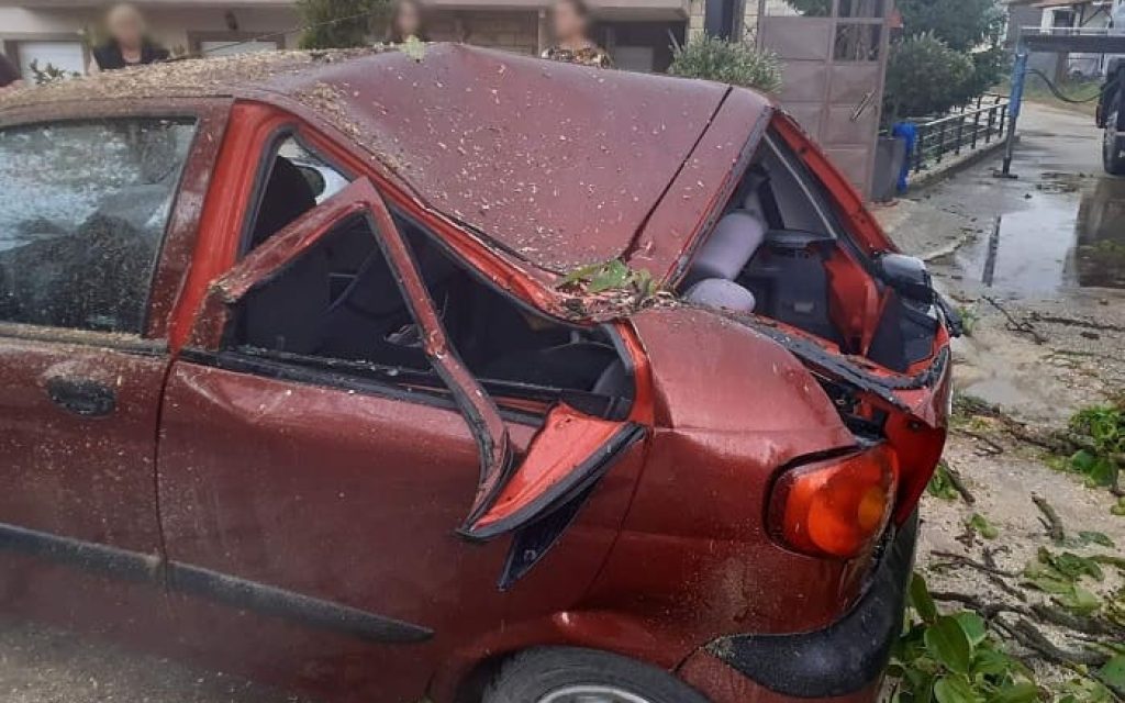 Σχεδόν ολοσχερής είναι η ζημιά που προκλήθηκε σε ΙΧ αυτοκίνητο μετά από πτώση δέντρου που σημειώθηκε στην περιοχή Ανατολής- Κατσικά.