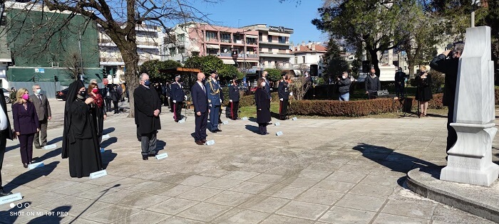 Στην δοξολογία που έγινε στην Μητρόπολη και στην κατάθεση στεφάνου οι παρουσίες ήταν περιορισμένες.