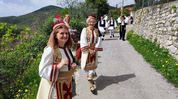 Από νωρίς το πρωί, ομάδες ανθρώπων κάθε ηλικίας, με παραδοσιακά στολές επισκέπτονται όλα τα σπίτια του χωριού.
