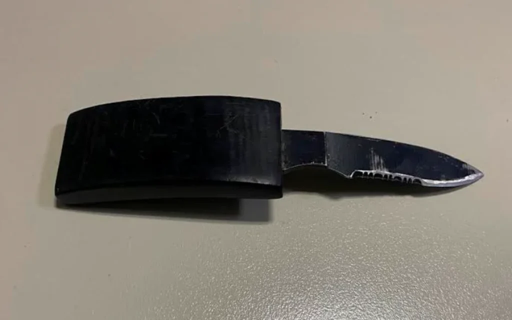 Κατά τον αστυνομικό έλεγχο, οι αστυνομικοί εντόπισαν στην κατοχή του μικροποσότητα ακατέργαστης κάνναβης, καθώς και αγκράφα ζώνης με ενσωματωμένη λάμα μήκους 8 εκατοστών, τα οποία κατασχέθηκαν.