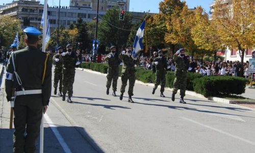 Η κεντρική πλατεία της πόλης, όπως και οι κεντρικοί δρόμοι γέμισαν ασφυκτικά από κόσμο που χειροκρότησε μαθητές και ένοπλες δυνάμεις.